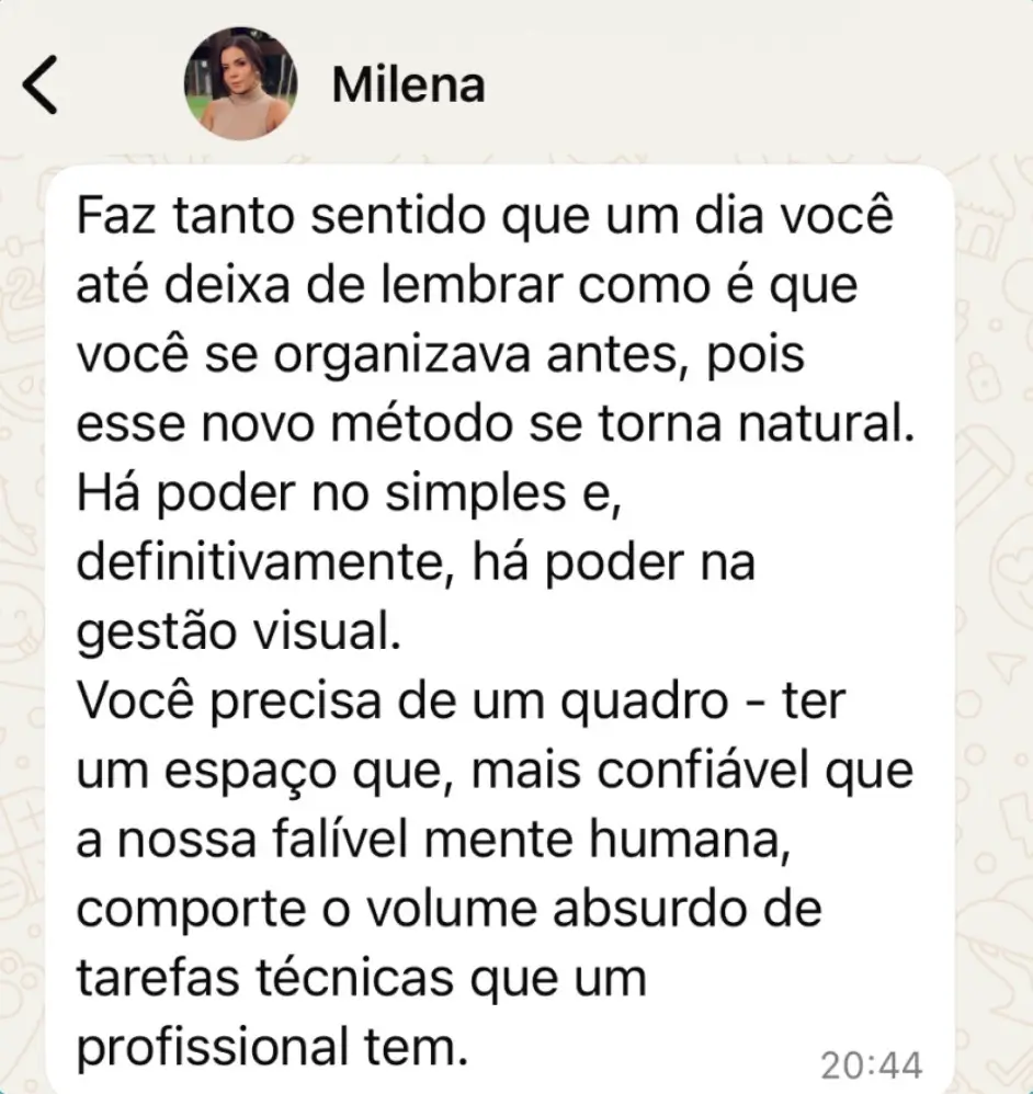 Você vai aprender a construir o seu próprio quadro de gestão visual, passo a passo do zero, com um sistema simples que vai te ajudar a: